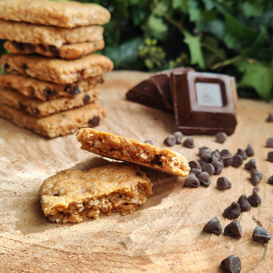 • Cookie ingredients: oat flakes* (29.7%), type “2” soft wheat flour*, high oleic sunflower oil*, cane sugar*, dark chocolate* (cocoa mass*, cane sugar*, cocoa butter*, cocoa powder* – min. 70% cocoa) (7.1%), agave syrup*, raising agents: (sodium carbonates) (* organic). Contains gluten. May contain nuts, eggs, and milk proteins.